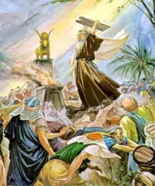 Anger is a strong feeling of displeasure aroused by a wrong. It can be a sorrow, a grief which can rise to levels of wrath, rage, irritation and violent frustration. Here Moses's wrath and frustration is displayed against the people for building a golden calf to worship when he was on Mt. Sinai... |