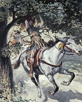 2 Samuel 18.9-17 "During the battle, Absalom happened to come upon some of David’s men. He tried to escape on his mule, but as he rode beneath the thick branches of a great tree, his hair got caught in the tree. His mule kept going and left him dangling in the air. 10 One of David’s men saw what had happened and told Joab, “I saw Absalom dangling from a great tree.”